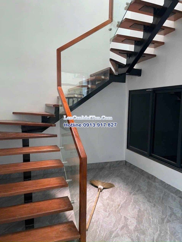 Thiết kế đơn giản, đường nét thẳng, thường kết hợp mặt bậc gỗ và lan can kính. Phù hợp với nhà phố và nhà ở phong cách tối giản.