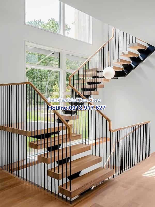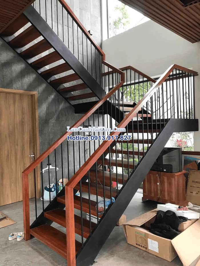cầu thang sắt mặt gỗ